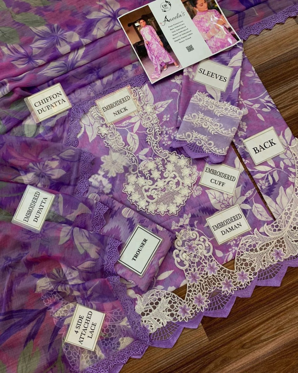 Aneela’s – Printed Lawn 3-Piece Unstitched Suit with Chiffon Dupatta | AS-03
