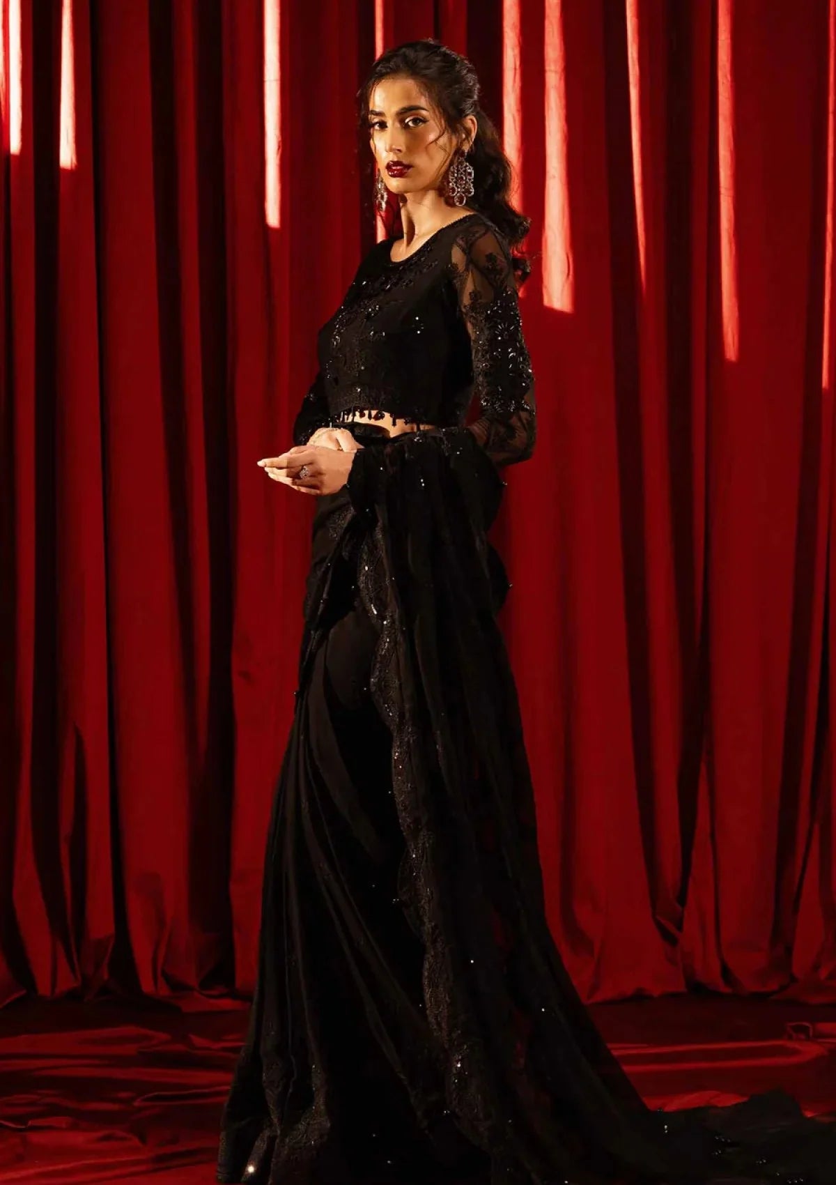 Discover timeless elegance crafted with intricate details — this Black Eastern Saree ensemble features luxurious hand embroidery, delicate organza accents, and premium fabrics to create a sophisticated look perfect for weddings, festive occasions, and luxury events.