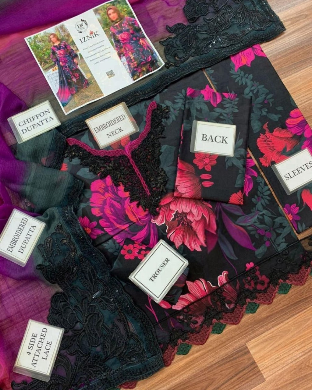 A chic and timeless creation by Iznik, blending intricate embroidery with graceful prints — perfect for everyday elegance and festive flair.