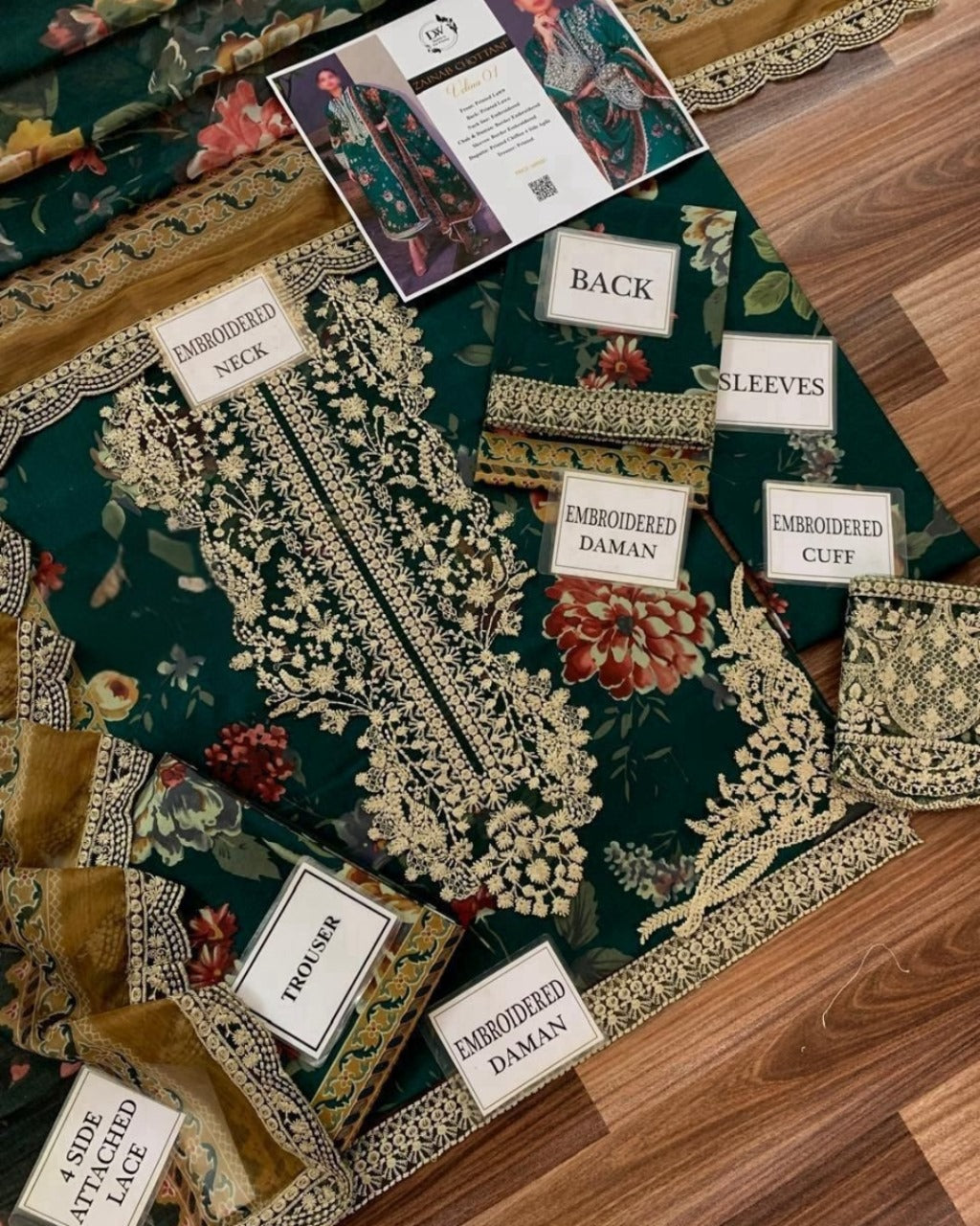 Zainab Chottani – Velina Green Floral Embroidered Lawn 3-Piece Unstitched Suit